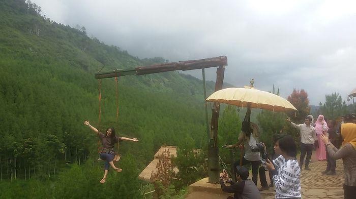 Penasaran gimana rasanya berayun di ketinggian? Kamu bisa mencobanya di The Lodge Maribaya Lembang lho. The Lodge Maribaya Lembang memiliki satu spot foto kekinian yang sering terlihat di media sosial.