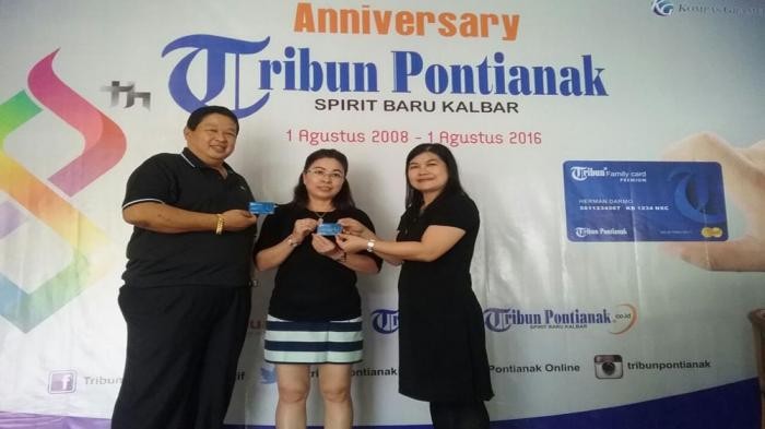 Mereka datang ke kantor Tribun Pontianak di Jalan Sungai Raya Dalam 24 a untuk menerima langsung kartu TFC Premium dari Pimpinan Perusahaan Pemimpin Perusahaan Tribun Pontianak, Julia Lorrains.