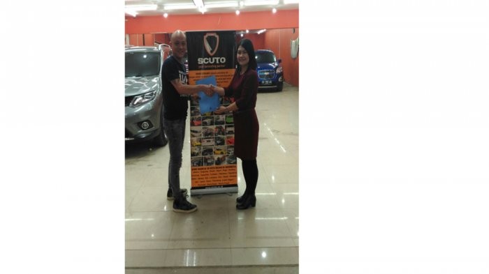 TRIBUNPONTIANAK.CO.ID, PONTIANAK - GM Business Tribun Pontianak Julia Lorrains mengucapkan terima kasih Bapak Erwin atas kesediaan Scuto bekerja sama dengan Tribun Pontianak untuk layanan premium gratis cuci mobil (luar) maksimal 10 kali per tahun mulai 1 Januari 2017 diluar hari minggu.