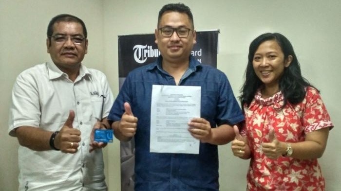 Owner Servis AC Experts, Ade Rachmadiansyah (tengah), usai melakukan Memorandum of Understanding (MoU) di Gedung Graha Tribun, Selasa (25/7/2017).