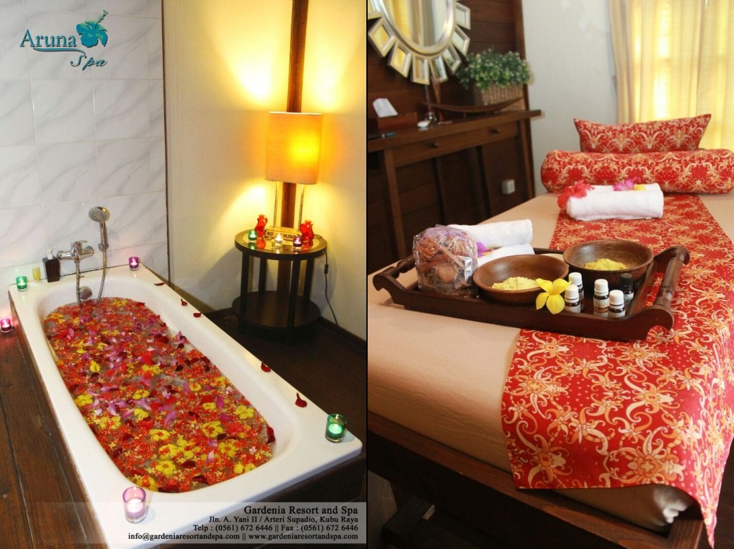 TRIBUNFAMILYCARD.COM - PONTIANAK, Nikmati kemewahan perawatan spa di Aruna Spa. Aruna spa terletak didalam lingkungan Gardenia Resort and Spa Perawatan spa alami yang berasal dari tradisi nenek moyang Indonesia mengenai kesehatan dan kecantikan untuk meremajakan, merelaksasi dan menyegarkan tubuh, pikiran dan jiwa. Staf kami yang ramah akan melayani anda dari hati dengan memanjakan anda melalui pelayanan spa yang terkemuka untuk mengisi waktu anda yang berharga.