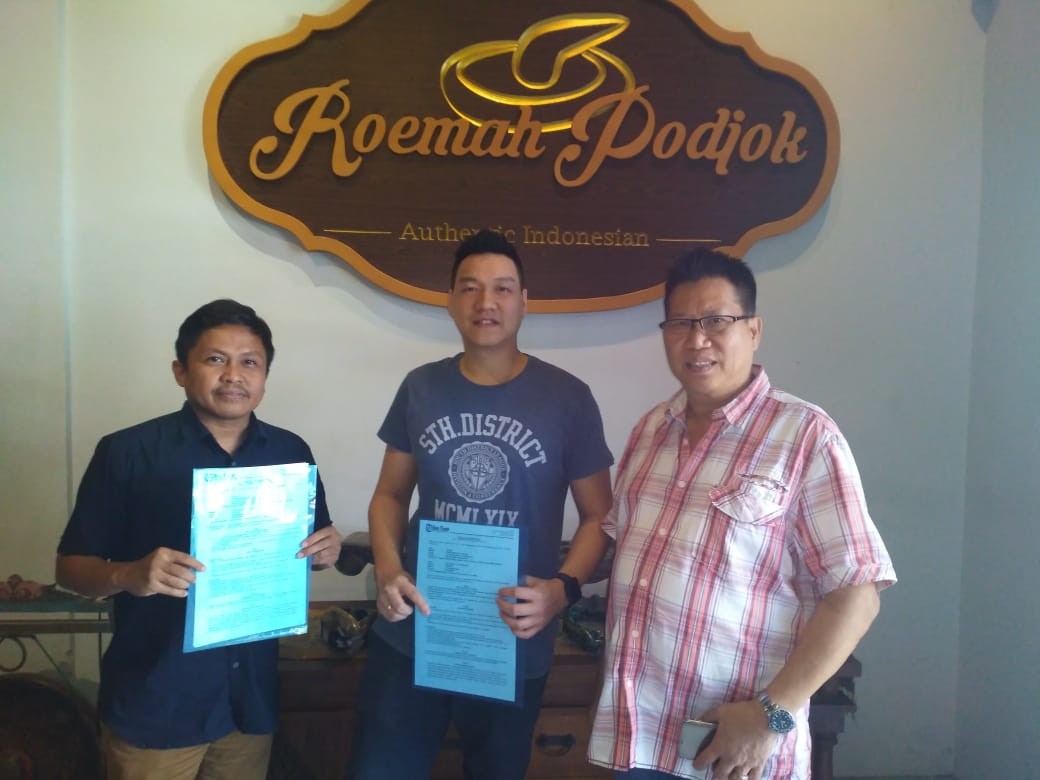 Kerja sama merchant TFC Premium itu dilakukan oleh Manajer Sirkulasi/TFC Premium Tribun Timur, Abdul Haris Suardi, dengan owner Roemah Podjok, Liem Willy Limoharjo, di restoran setempat, Kamis (26/7/2018).